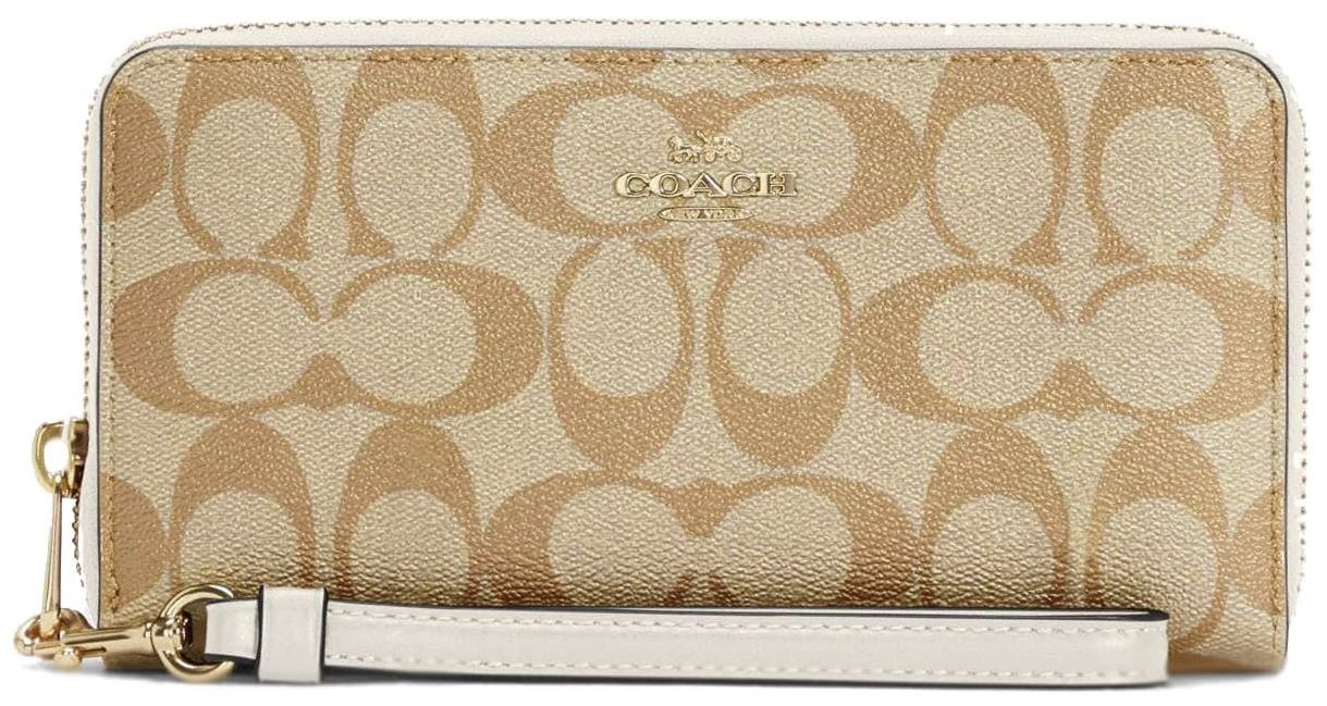 Coach Signature Light Khaki Chalk Canvas Zip Around Wallet