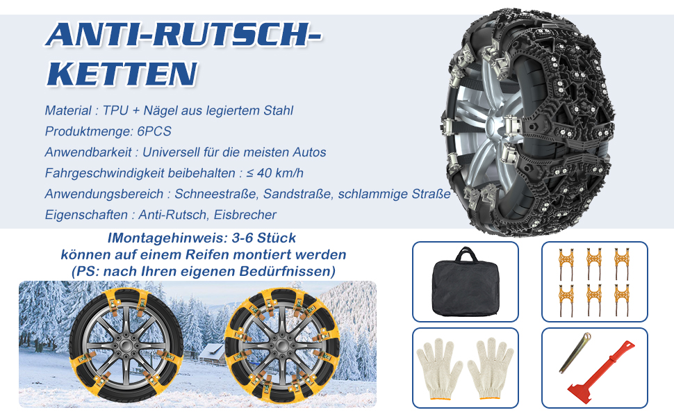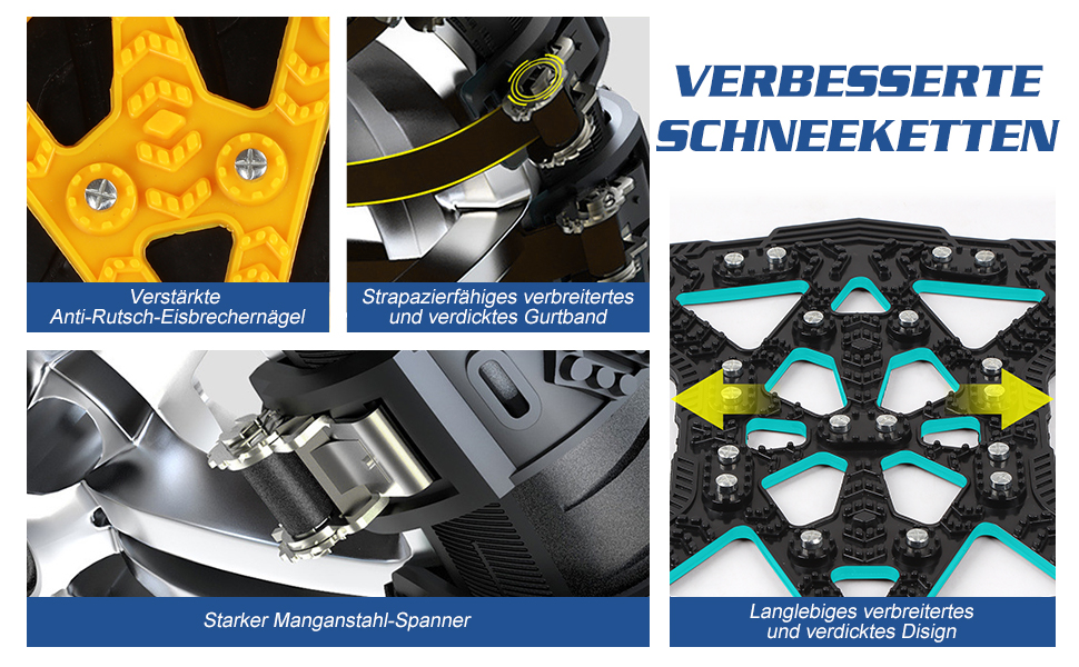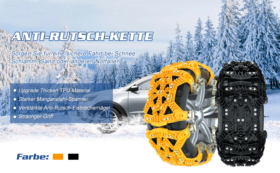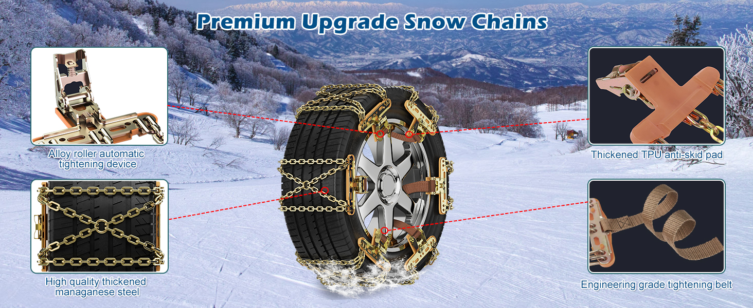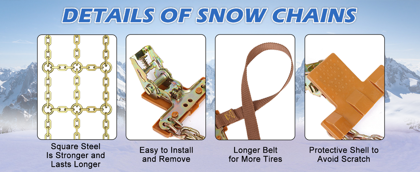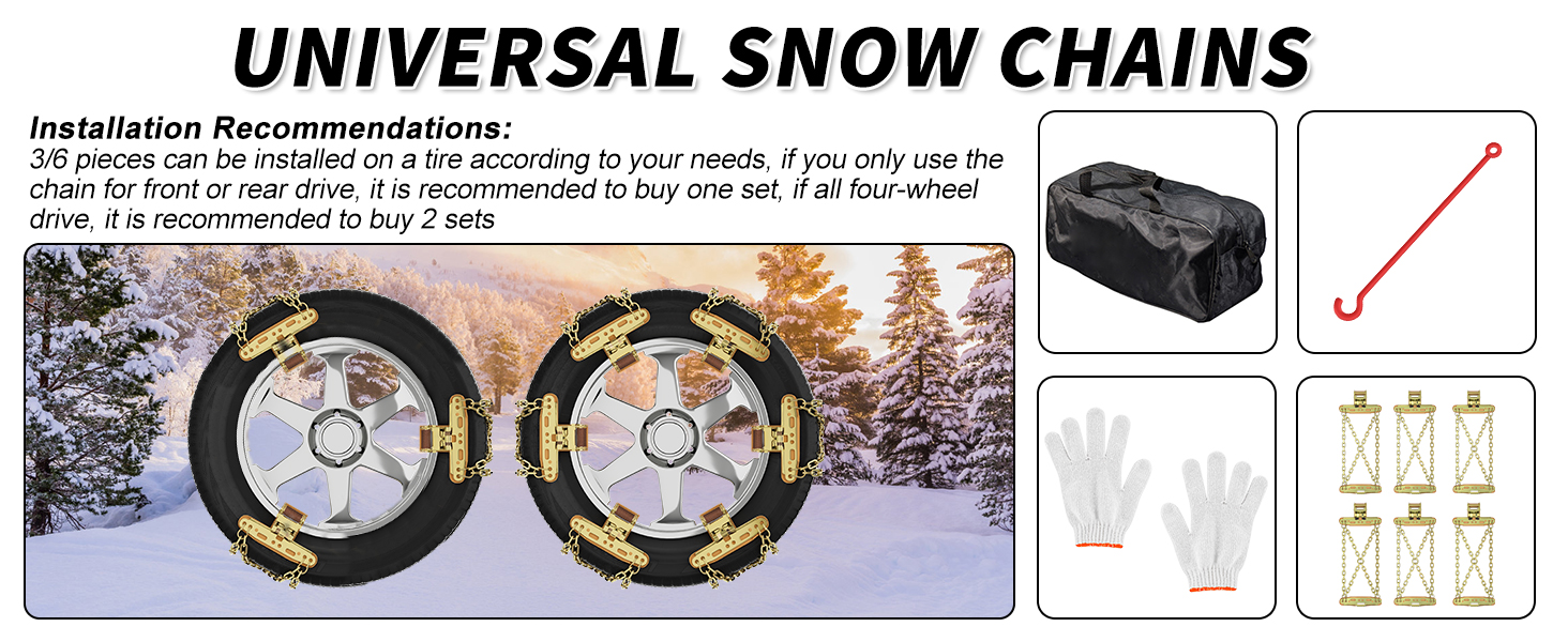 ❄️【Premium Quality Snow Chains】: Made of high-quality manganese steel materials, it can withstand heavier loads, each car snow chain is composed of thick chains, strong and wear-resistant, strong grip, strong ice breaking, and strong anti-skid ability. The snow chain can provide smoother and safe driving.