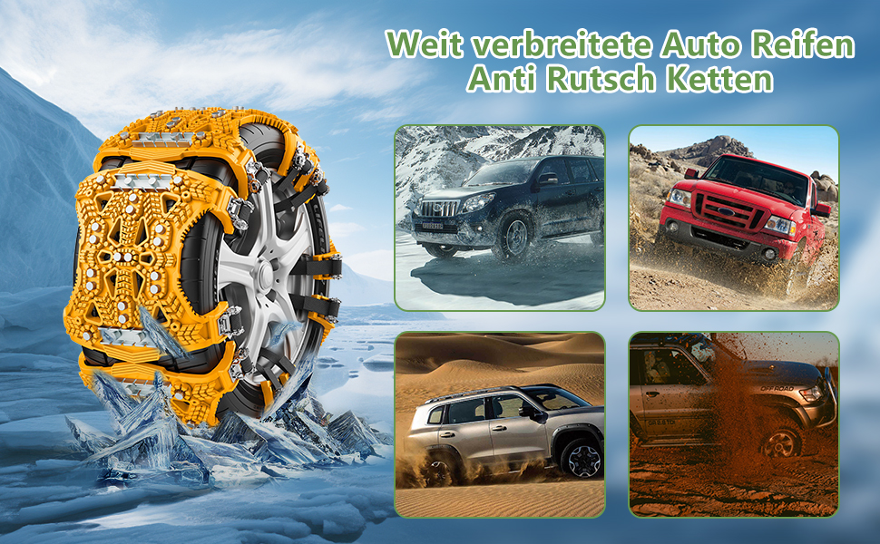 ❄️【Multiple Scenes】:Adapt to all kinds of bad weather, rugged terrain, whether it is rain, blizzard, hail, our chain can your safety. You can use the car snow chains as an essential tool for emergencies such as snowy roads, muddy roads, sandy roads, rainy roads, mountain road, climbing roads, slopes, etc.