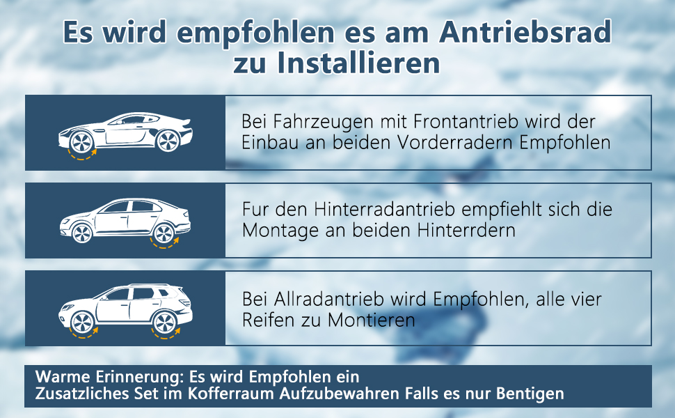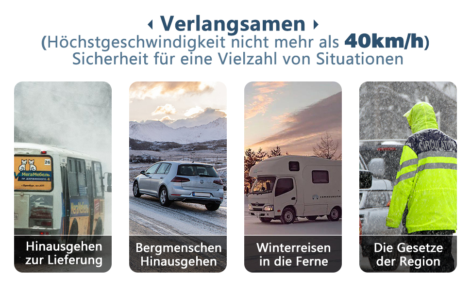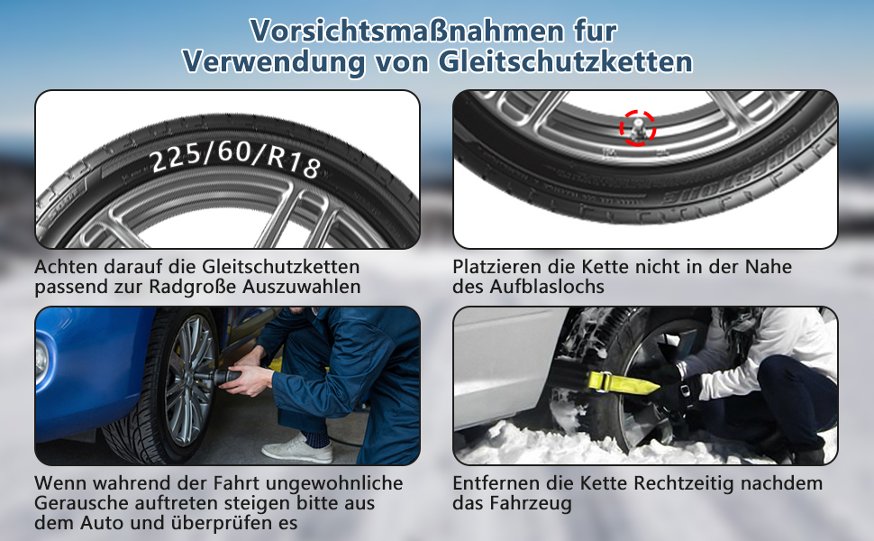 ❄️【Notice】:Drive carefully in bad weather and keep the speed below 40 km/h. If the chain on the cleat falls off, please stop using it immediately. Do not put the chain on the iron wheel, and avoid using it on sharp objects, dry sidewalks or flat ground , Stop using when it feels abnormal sound, buy a new chain when the chain wear exceeds 31 percent