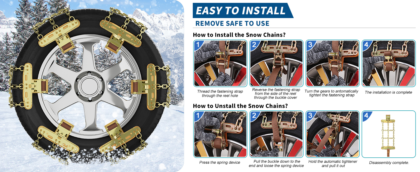 ❄️【Easy to Intall】:The anti slip snow chains is easy to install and safe to use. You can complete the installation in a few minutes without moving the car.