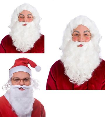 Santa Beards Choose from 3 different quality of santa beard kit Santa Bead Kit 1: Beard only Santa Beard Kit 2: Deluxe kit Wig, Beard & Glasses Santa Beard Kit 3: Hat, Beard & Glasses Brand New