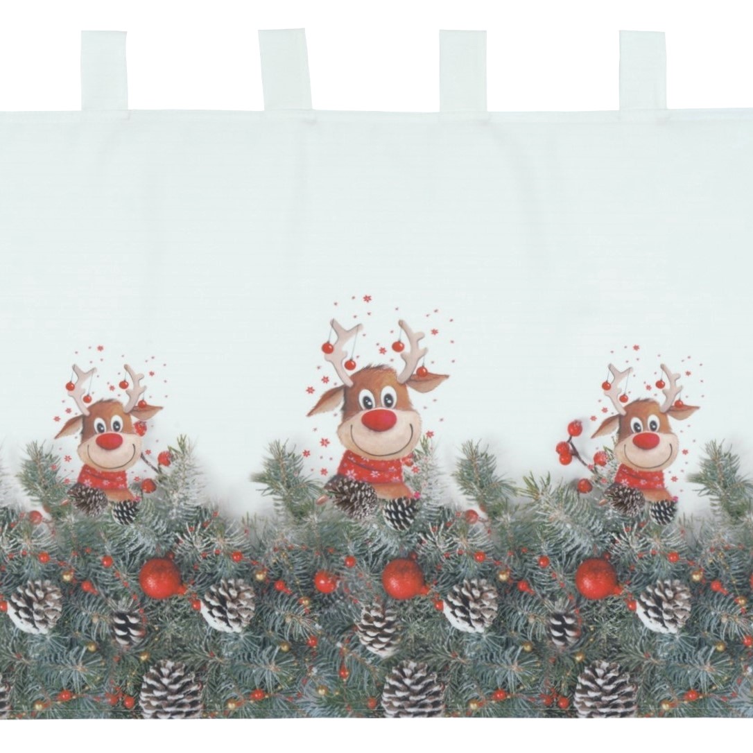 Weihnachtsgardine Elch Rote Nase Scheibengardine Weihnachten Schlaufen