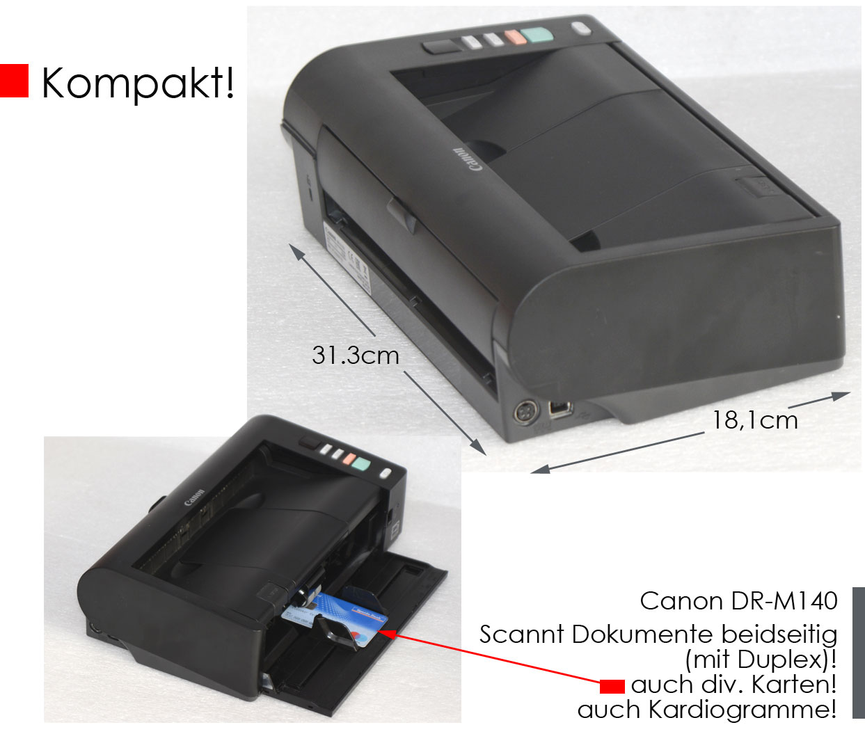 Andere Dokumentenscanner finden Sie bei uns HIER; Einige Canon imageFormula DR-M140, die besonders frisch sind, sowie günstiger in "grau" - finden Sie bei uns HIER
