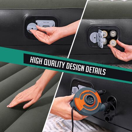 If you‘re looking for an airbed for multi-purpose use, look no further than the Bestway Queen Air Mattress Inflatable Bed Blow Up Airbed. Constructed using high-quality and environmentally friendly materials, our inflatable mattress is durable, non-toxic, odour-free, and puncture-resistant. With inflated dimensions of 203 cm x 152 cm x 30 cm, it is strong and stable with a load-bearing capacity of up to 300 kg. As this mattress can be easily inflated or deflated, it is quick to assemble and convenient to store and transport. You can use it for various purposes, including guest accommodation, temporary bedding solutions, camping, backpacking, and any outdoor activities. Even better, the Bestway inflatable mattress is designed to provide even support to your body, promoting proper spinal alignment and reducing pressure points for a comfortable sleep. Besides, it allows for better temperature control during sleep and avoids overheating.
