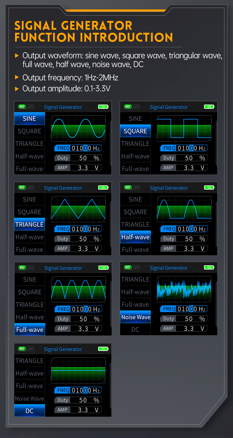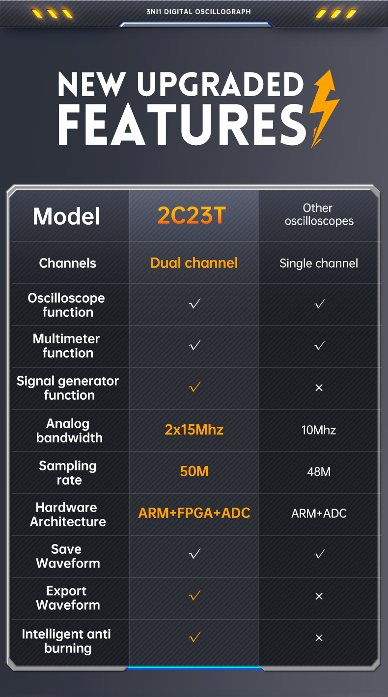 1. Dual-channel 3-in-1 digital oscilloscope: multimeter + oscilloscope + signal generator