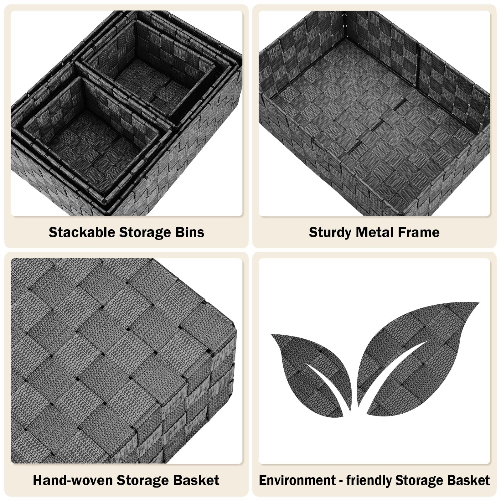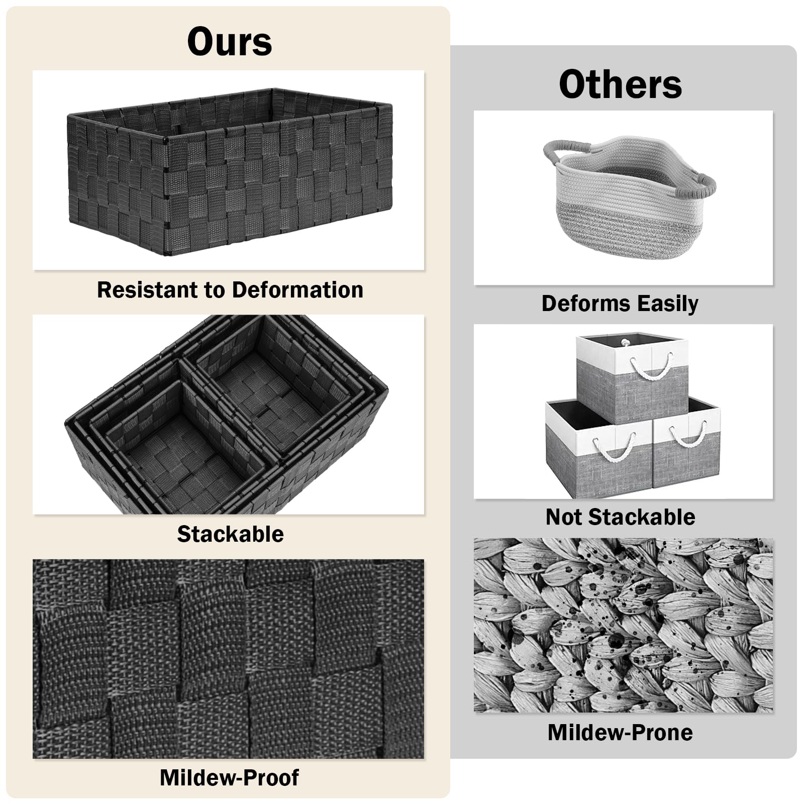 Uvellgift Cestini Portaoggetti, Set di 6 Cestino Portaoggetti Impilabili Multiuso, Scatole Portaoggetti per Bagno/Cucina/Camera/Cosmetici/Asciugamani (Nero)