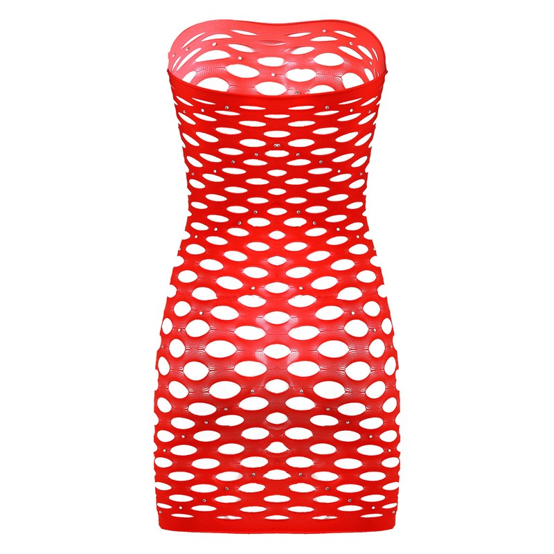 Womens Shiny Rhinestone Mini Dresses Hollow Out Fishnet Strapless Dress for Pool Party Night Club.