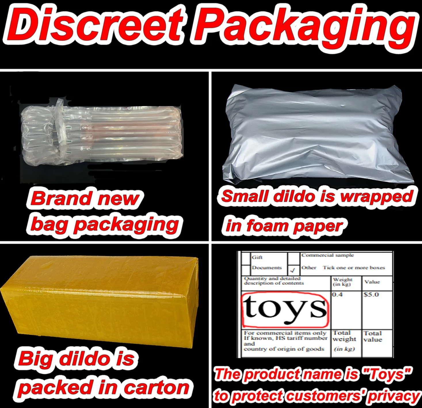 Dear.Discreet carton packaging protects your privacy! If there are any logistics and quality problems, please contact us, we will compensate you for your losses, thank you for your cooperation!
