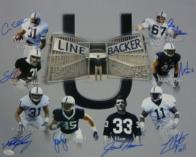 This is a 16x20 photo that was personally autographed by some of the greatest linebackers from Linebacker U, Penn State. Autographs include Paul Posluszny, Andre Collins, Shane Conlan, Mike Mauti, Jack Ham, Greg Buttle, Lavar Arrington and Sean Lee. This includes a certificate of authenticity from James Spence Authentication (JSA) and Denver Autographs.