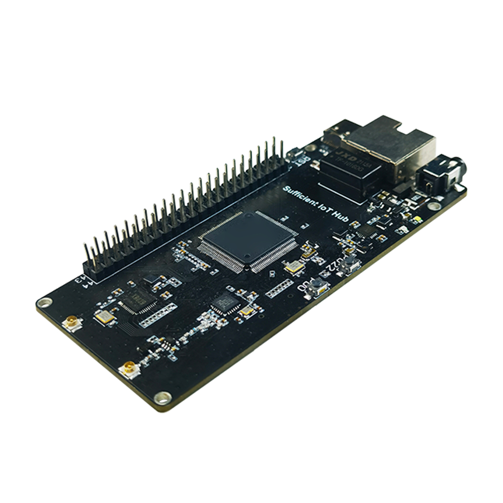 The Sufficient loT Hub comes in a Linux system package, equipped with a dual core 64 bit ARM A7 processor, running at 1GHz, and has 128MB DDR3. As an IoT device, its main functions include LoRa, Wi Fi, and Bluetooth. At the same time, we create a dedicated Sufficient IoT operating system for it, which includes a CLI application and web UI that can directly operate onboard resources. In this way, even if users have no programming experience, they can effectively operate PWM, 12C, SPI, LoRa, and other protocols to develop what they want.