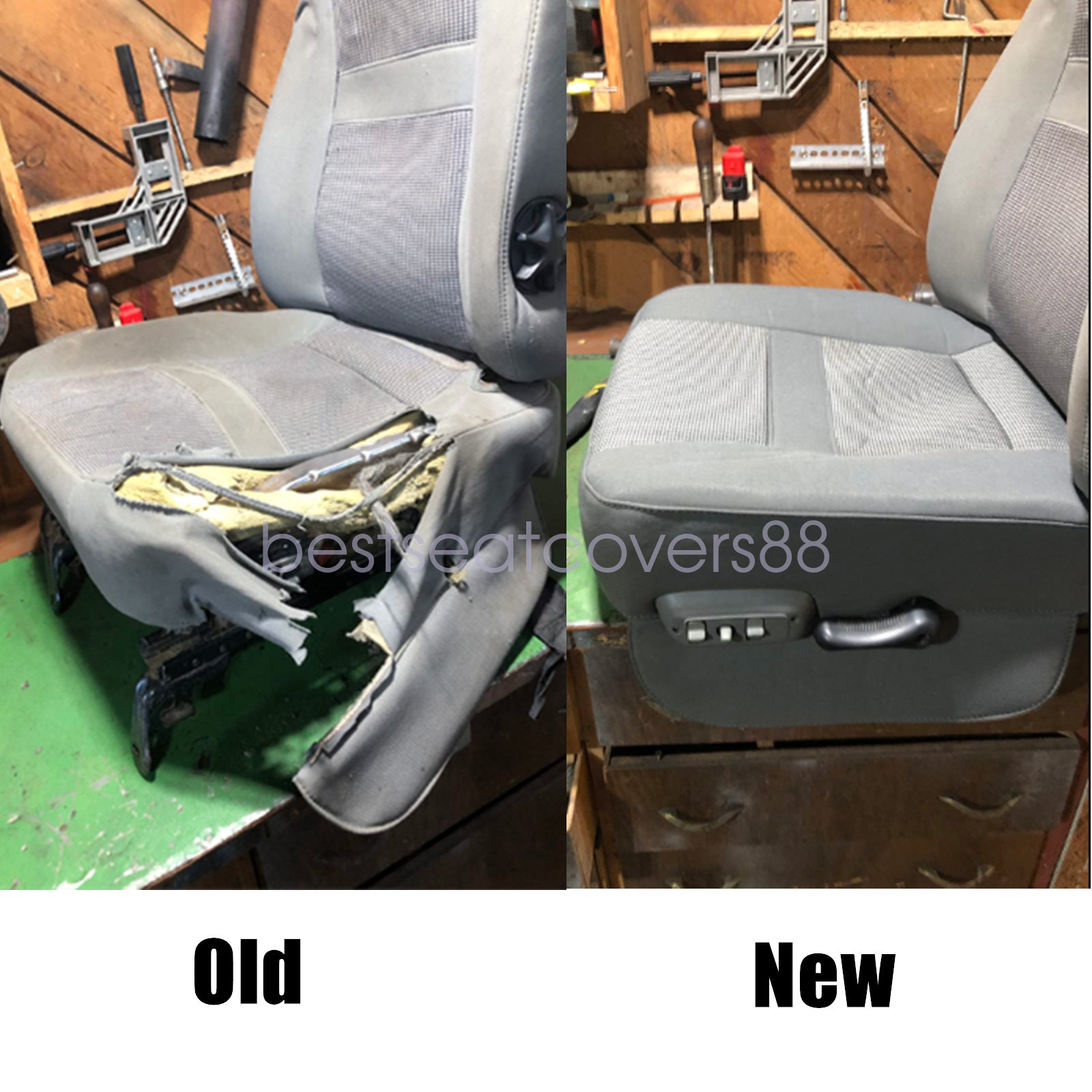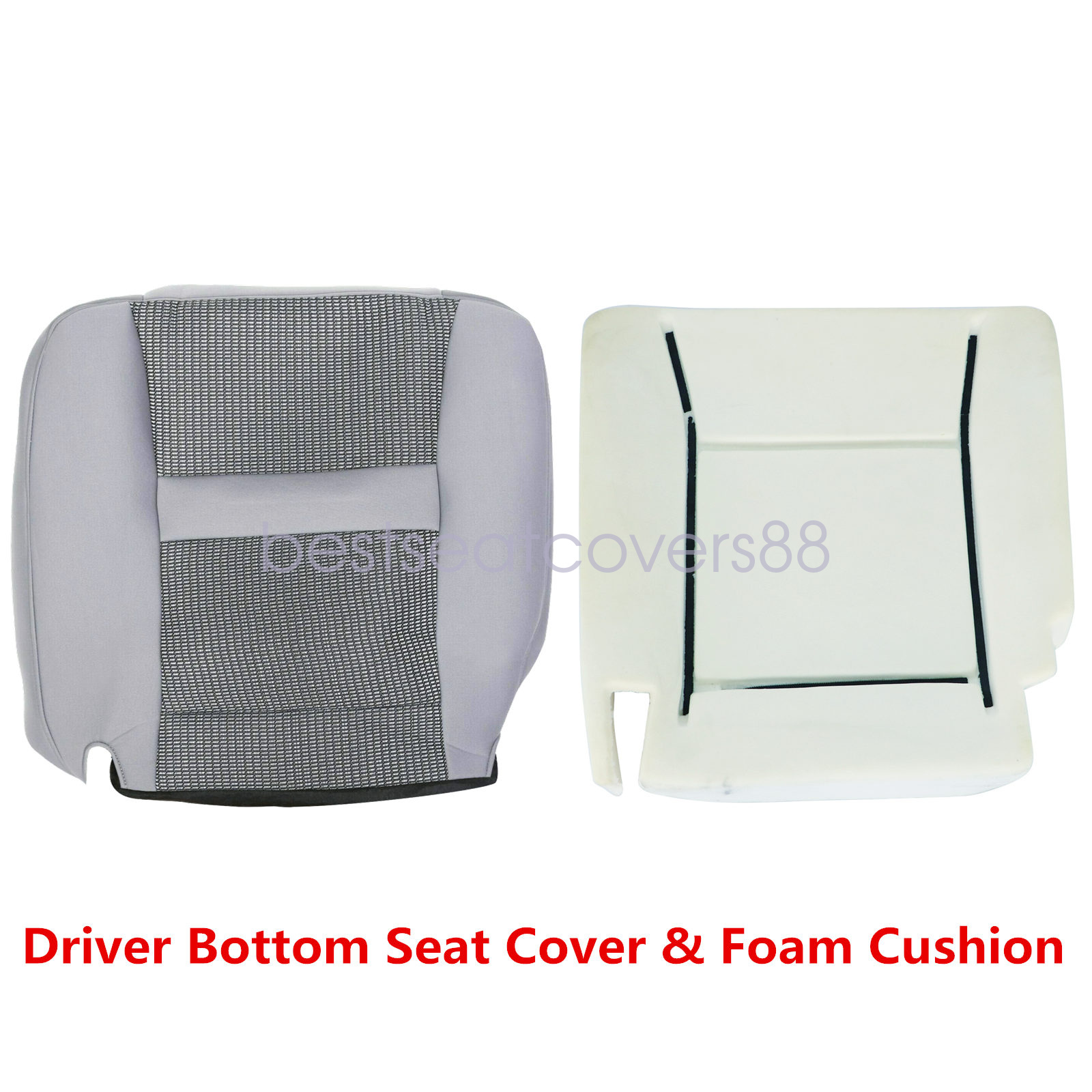 Driver Bottom Cloth Seat Cover Gray & Foam Cushion For 2006-2010 Dodge Ram 1500 2500 3500 4500 5500
