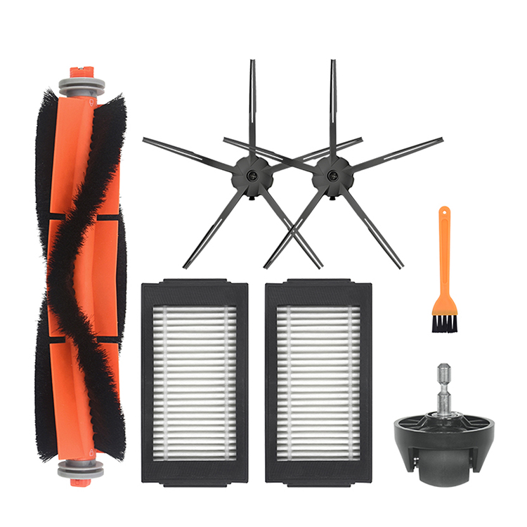 l 1x roller brush + 2x pentagonal side brush + 2x filter + 1x universal wheel + 1x brush
