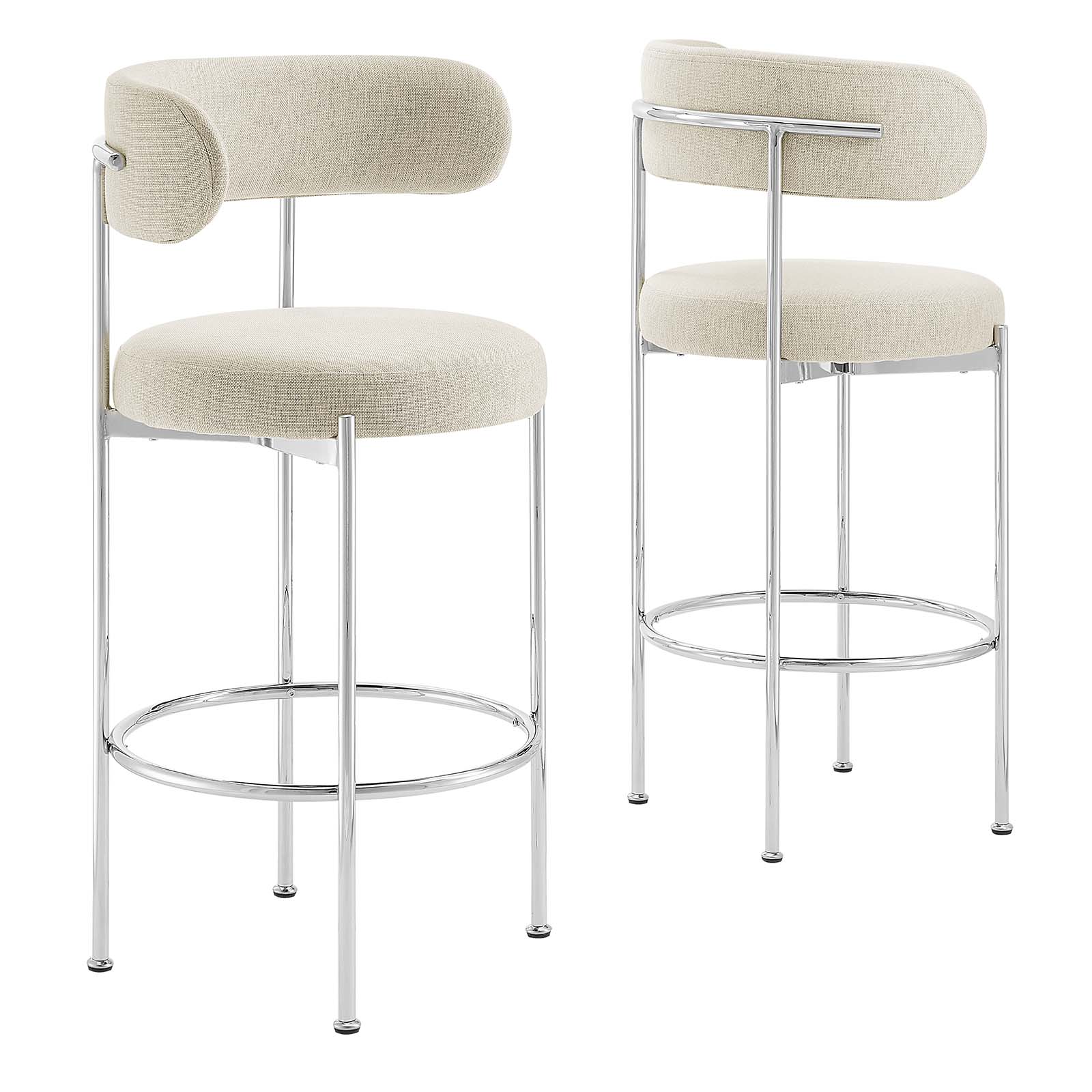 Modway Albie Fabric Bar Stools - Set of 2 in Beige Silver
