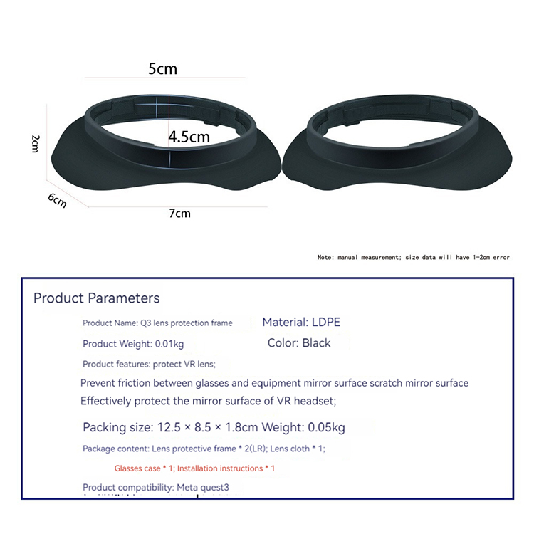 2x Lens Protection Frames (L&R) + 1x Lens Cloth + 1x Eyeglass Case + 1x Instruction Manuals