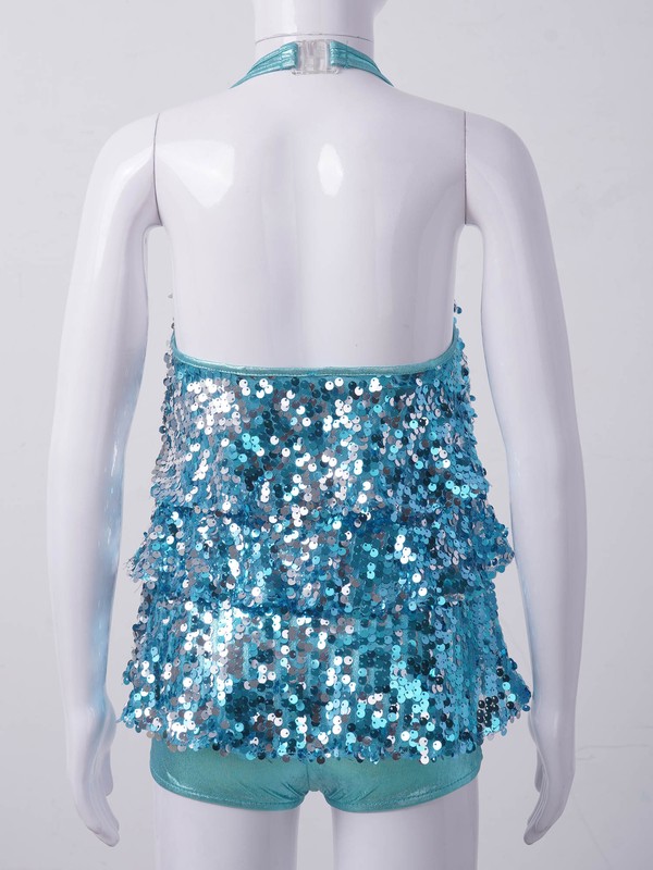Dance costume is made of polyester and sequins material, hand wash.