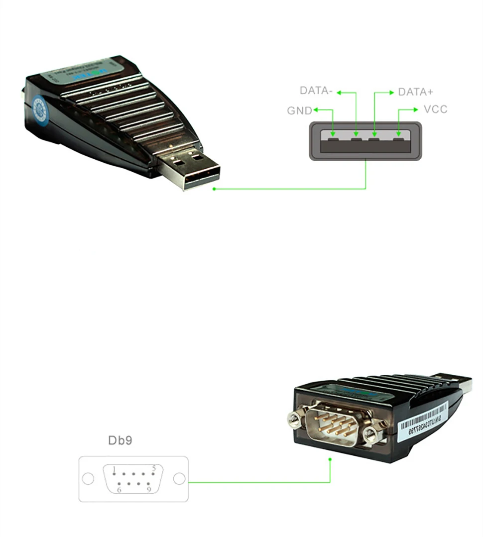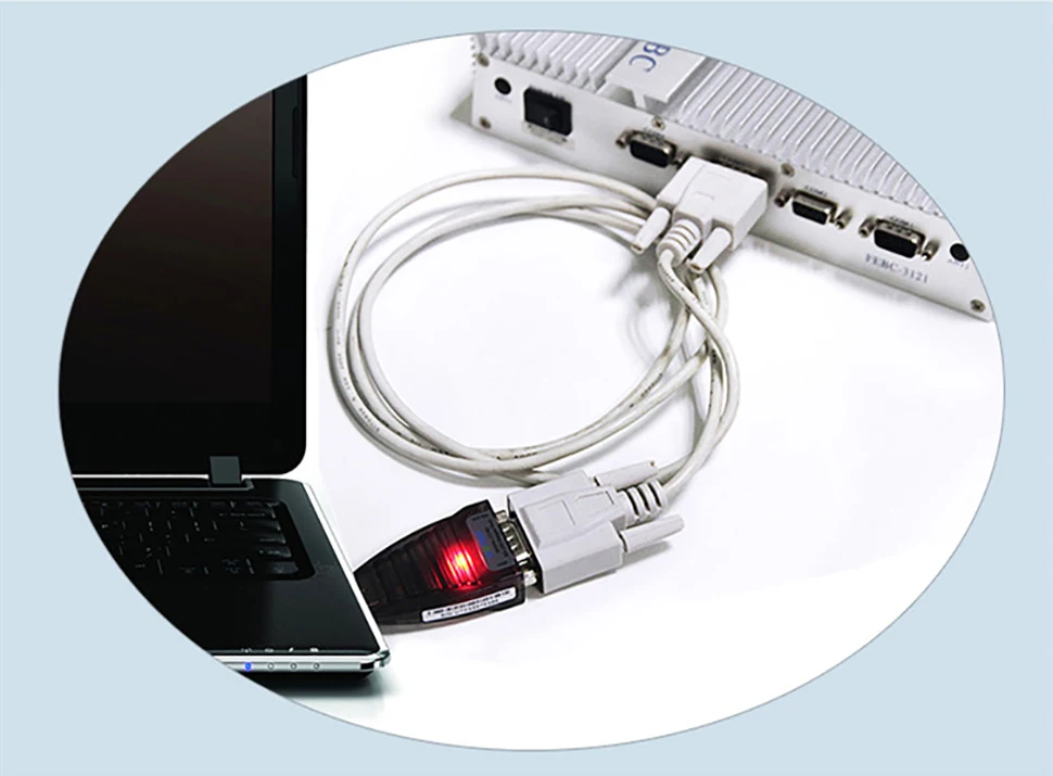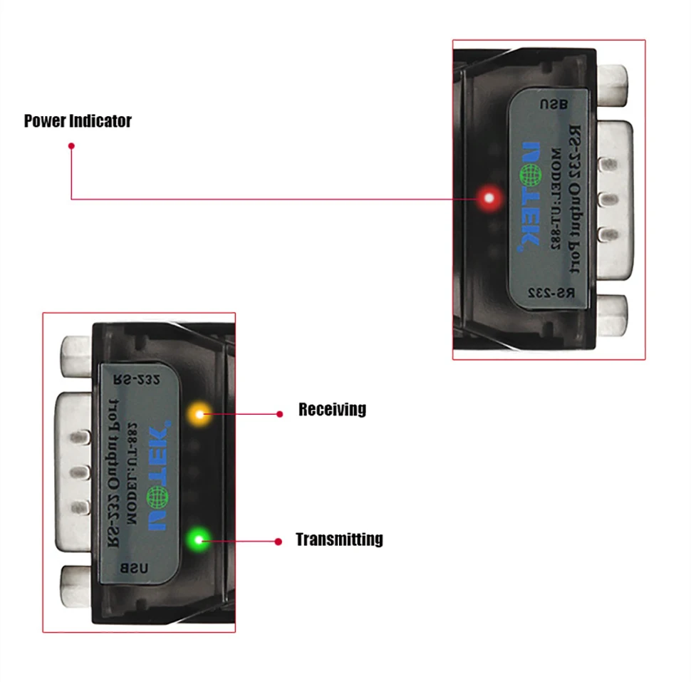 UT-882 USB to RS-232 converter provides reliable connection for point to point communication, with baud rate 300-460,800bps. The power and data flow indicators indicate the working status.
