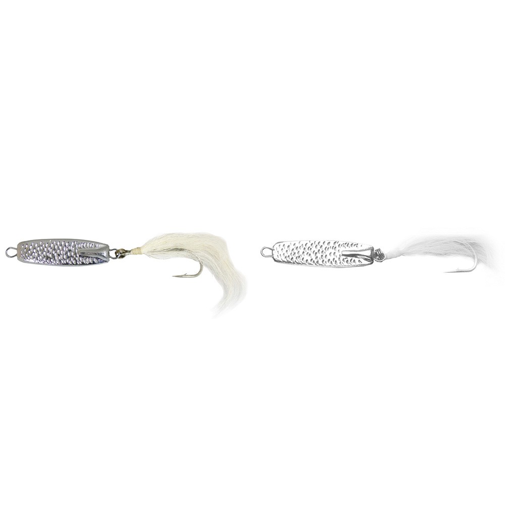The Pucci Mickey jig has withstood the test of time and remained the favorite lure of many Surf Fishermen. With a chrome-plated lead body and an aerodynamic design, this lure will reach past the breakers to where the fish are holding. The hook is tied with a white bucktail for added attraction. Great for Stripers on the beach!