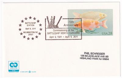 US Naval Ship Cover Commemorating the 70th Anniversary of the Commissioning of the Battleship USS NORTH CAROLINA BB-55 postmarked as pictured; Excellent Condition