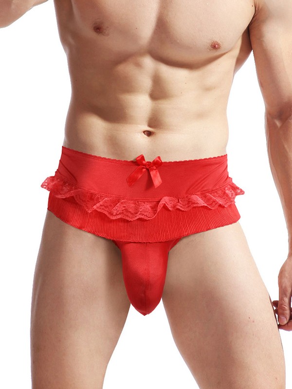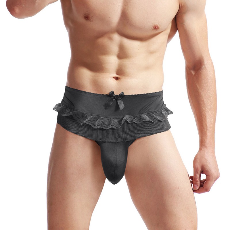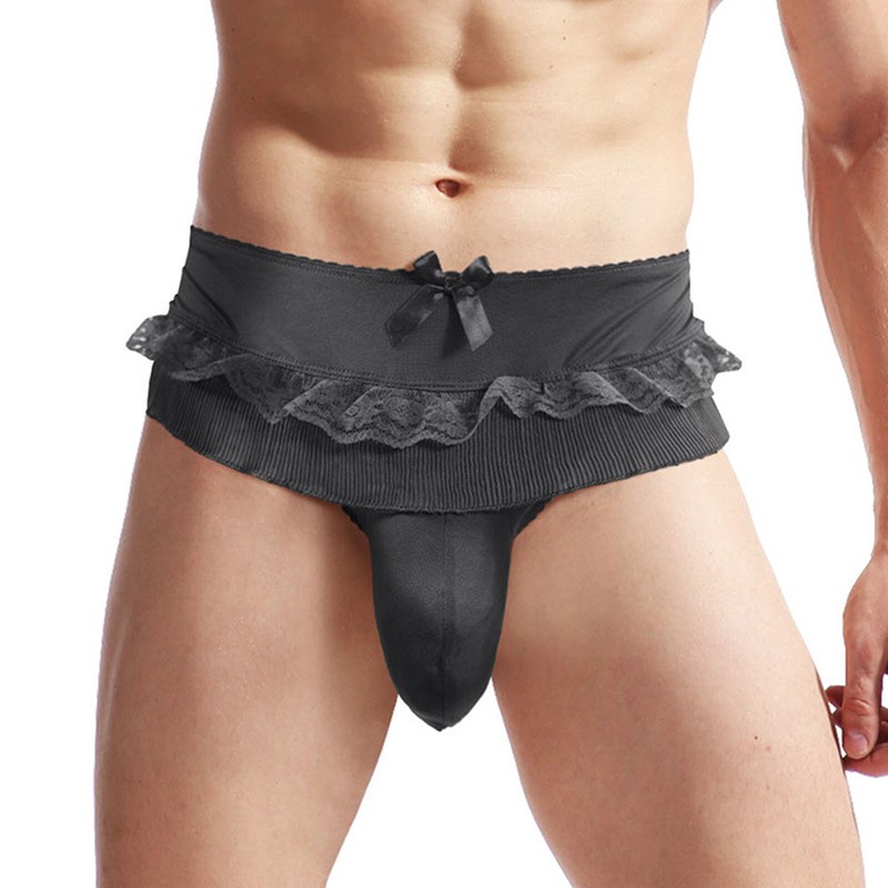 Men Sissy Satin Underwear Thong Lace Patchwork Panties G-string Briefs T-back.