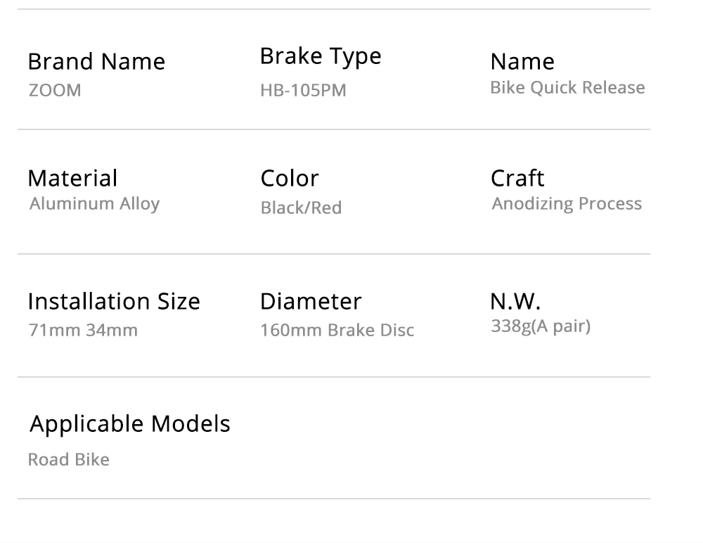 Feature: Anodization, Sand Blast, Bilateral Brake