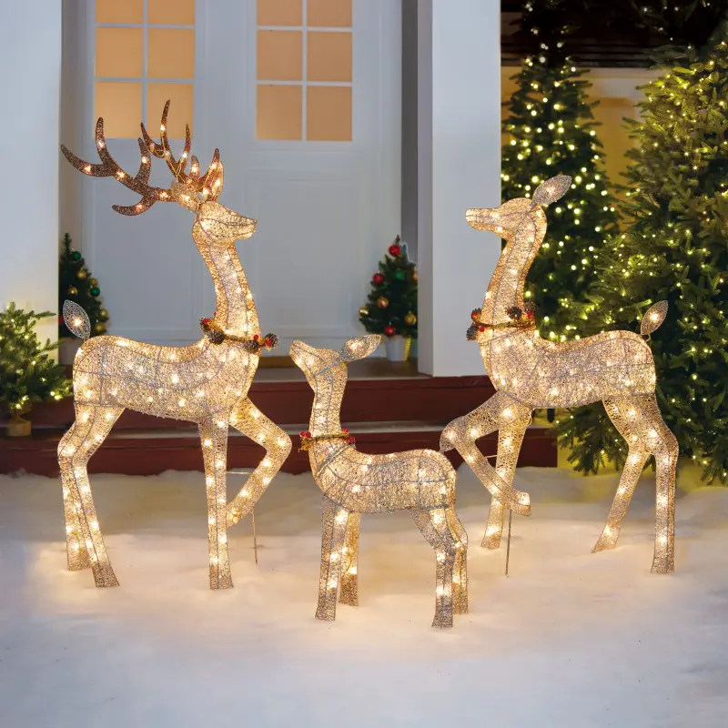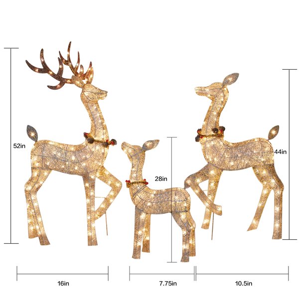 Holiday Time Set of 3 Light-up Glitter Deer Family, with 210 Clear Incandescent Christmas Lights: