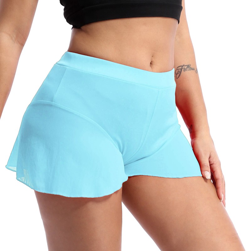 Women Summer Mid Waist Ruffles Shorts Nightclub Pole Dance Solid Color Elastic Waistband Hot Pants.
