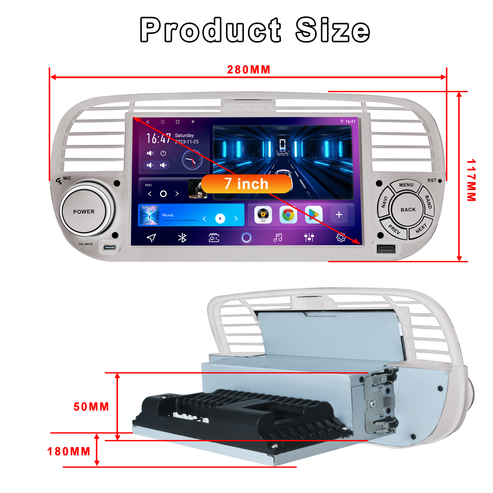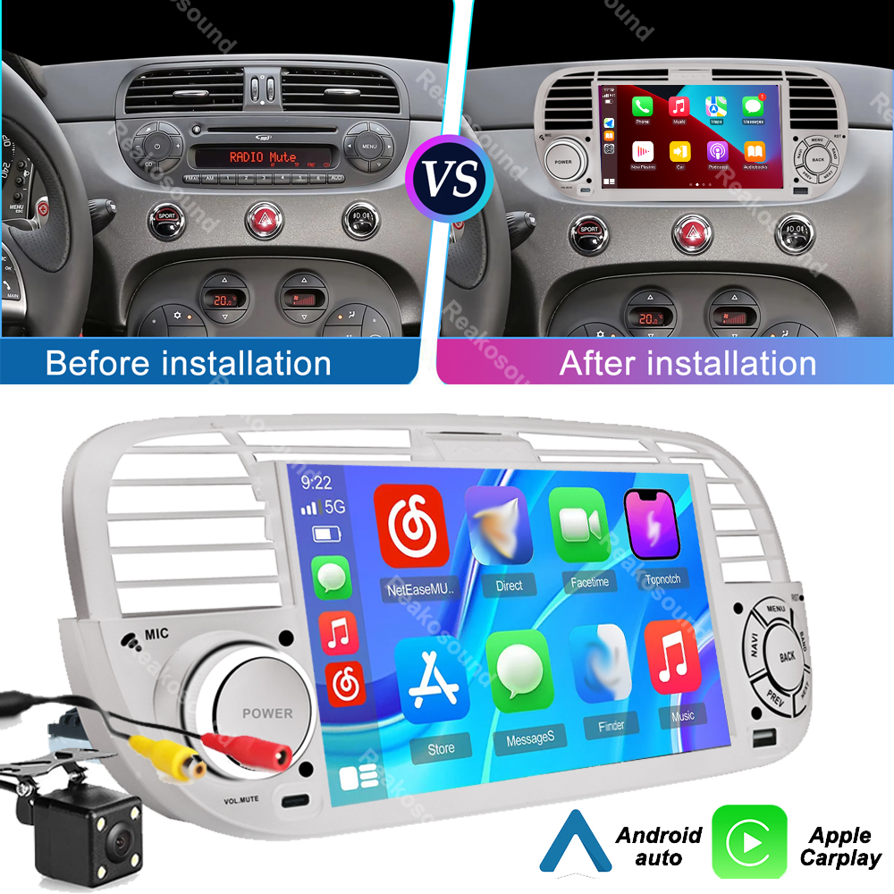 For Fiat 500 2007-2015 Apple Carplay Android Car Radio Stereo GPS Bluetooth RDS