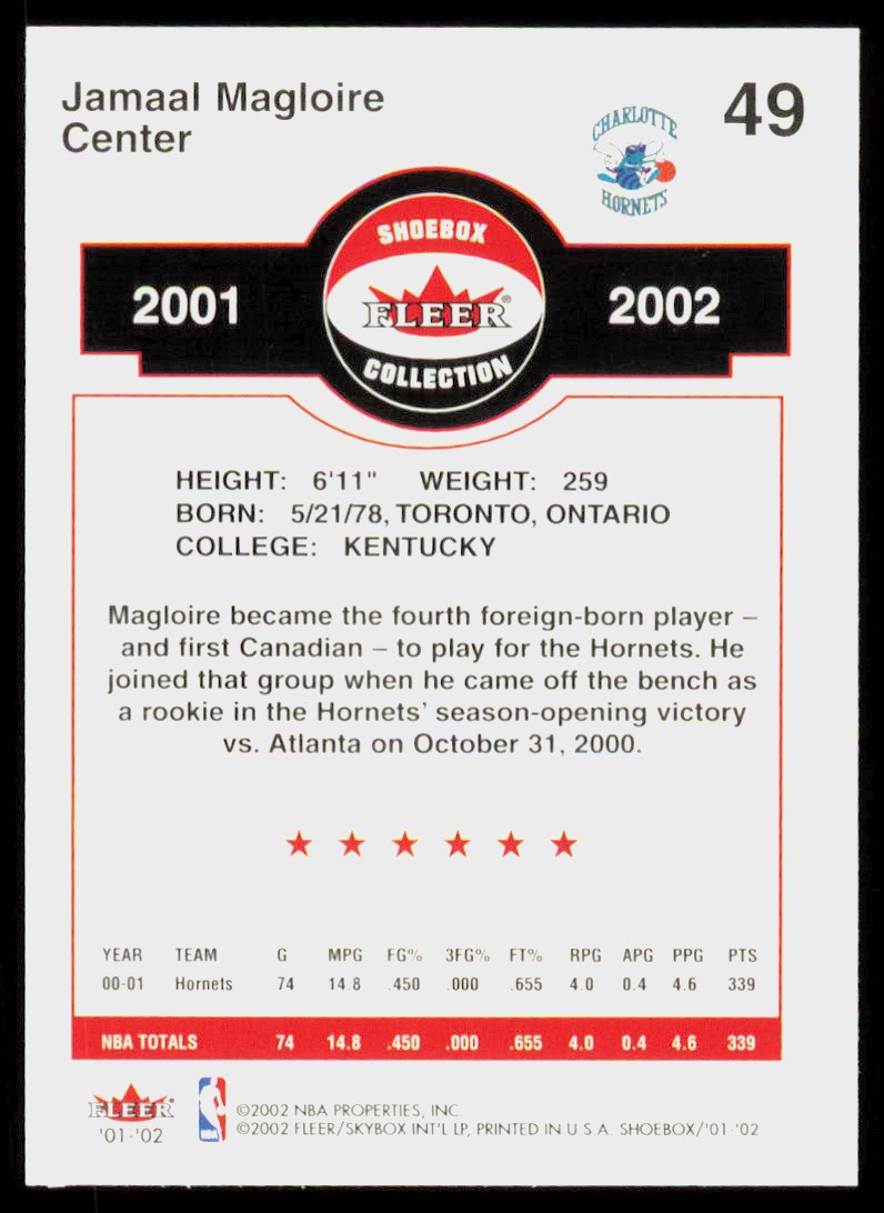 2001-02 Fleer Shoebox Collection (Kobe Bryant) Jamaal Magloire #49