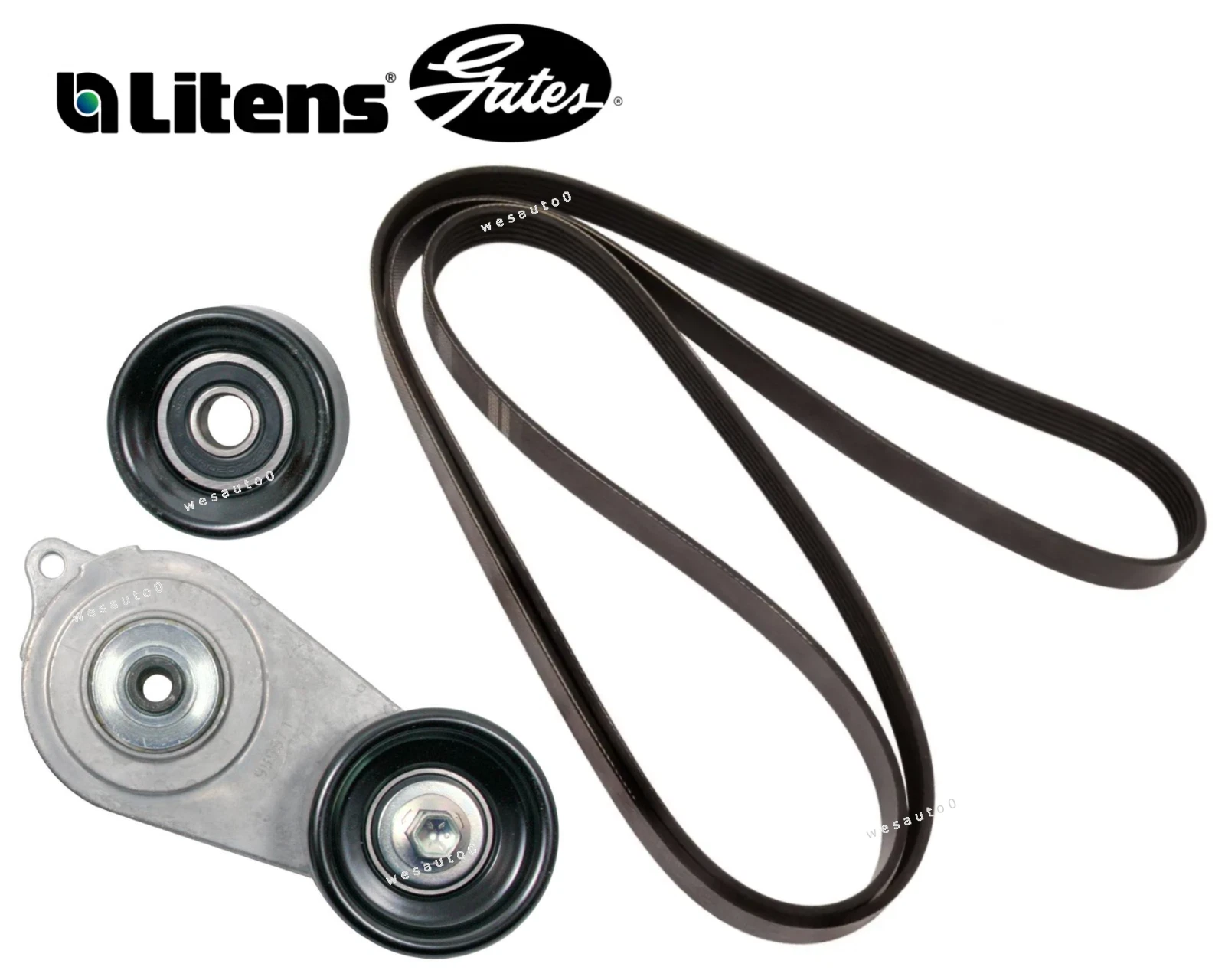 Belt Tensioner Assembly & Idler Pulley + Drive Belt Kit for Honda Accord Crosstour Odyssey Pilot Ridgeline 3.0L 3.5L Gas V6