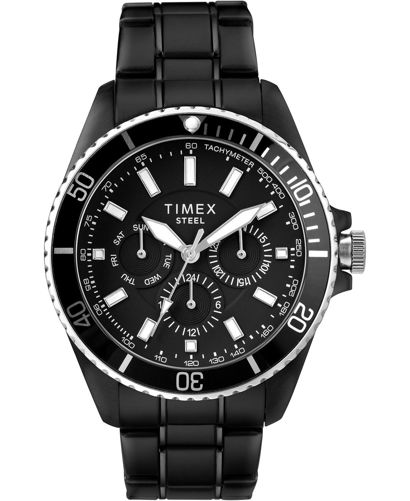 - Black Multifunction Dial (Day, Date, 24-Hour Subdials).