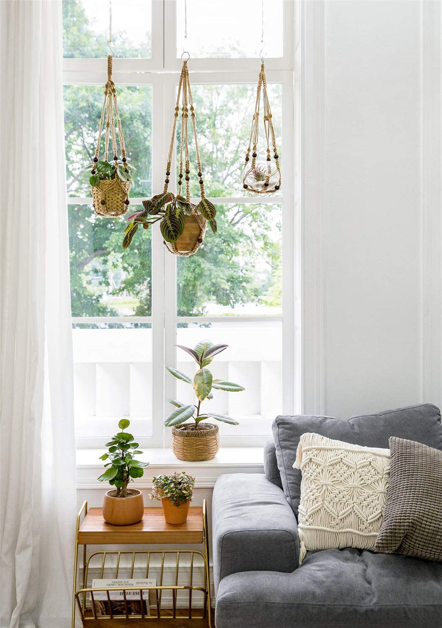 EASY TO HANG IN ANY SPACE-The hangers are suitable for indoor and outdoor use. Just expand the 4 leg strings, put the plant pot in the middle of the conjunction. It is great for boho home decor, make your life become unique. Hanging plant holder can be used for living room, kitchen, hall, patio, high and low ceiling.