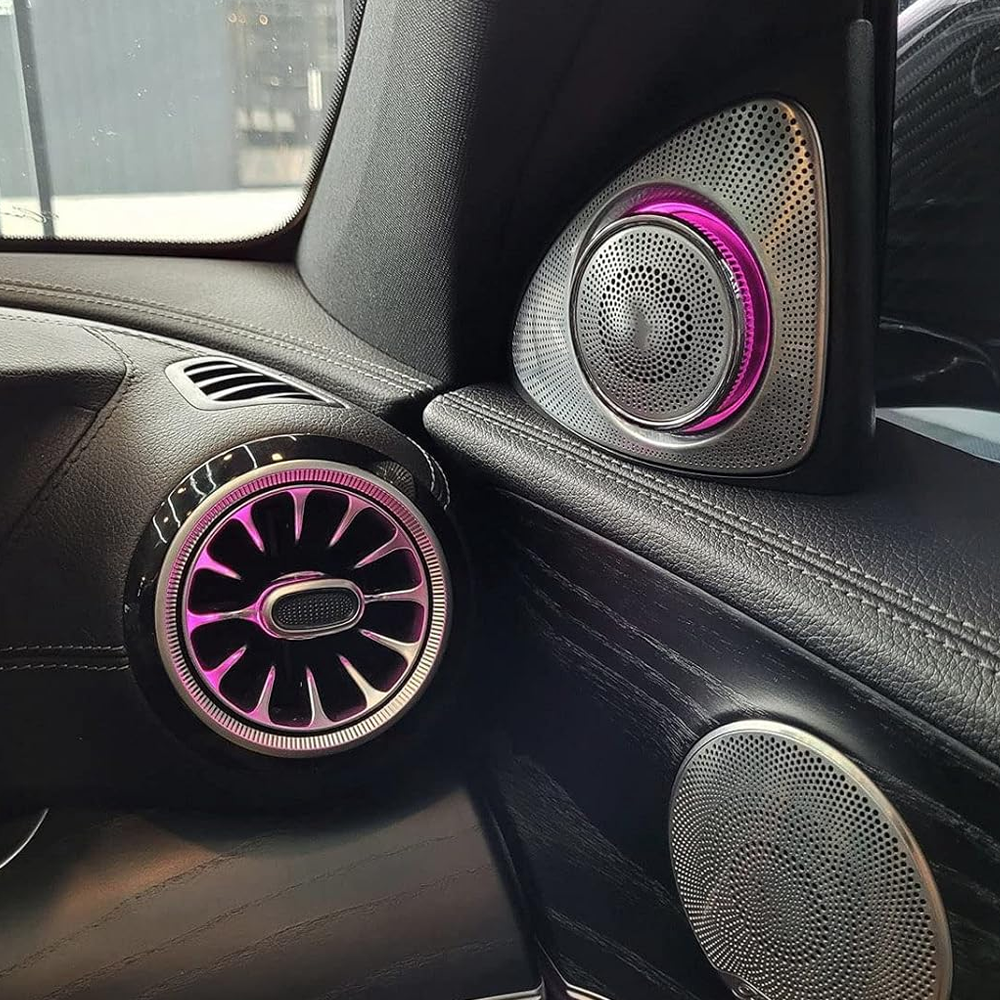 64-Farben-LED-Umgebungslicht – Diese hintere Turbinen-Luftdüse ist mit 64-Farben-LED-Umgebungslicht ausgestattet, und Helligkeit und Farbwechsel können über den zentralen Schalter des Originalautos gesteuert werden.