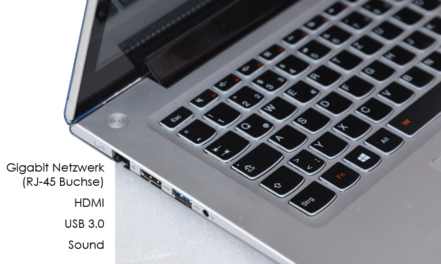 HDMI-Schnittstelle für externen Monitor oder Fernseher, USB 3.0 + 2x USB 2.0