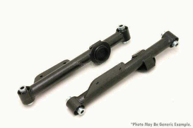 Stock control arms are marginal at best. Bushing deflection combined with control arm flex creates erratic handling and inconsistent rear end stability when subjected to the added loads of performance driving.
