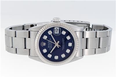 Custom Blue Dial Set With 10 Added Genuine Round (VVS H Color) Diamond Markers.