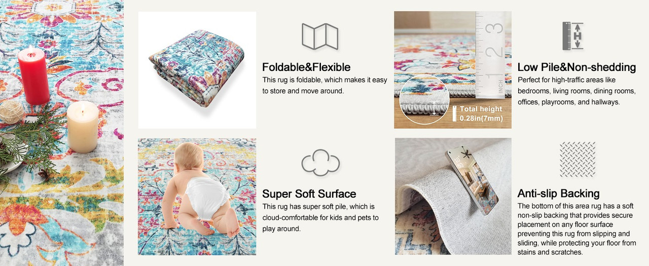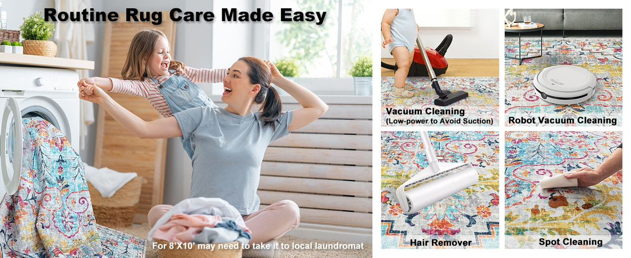 Say goodbye to expensive cleaning services. This rug is designed for easy upkeep—just toss it in the washing machine or vacuum regularly to keep it looking fresh. Spot cleaning with mild detergent tackles everyday spills, making it perfect for homes where life gets messy. No additional rug pad is needed, though it can be added for extra comfort.