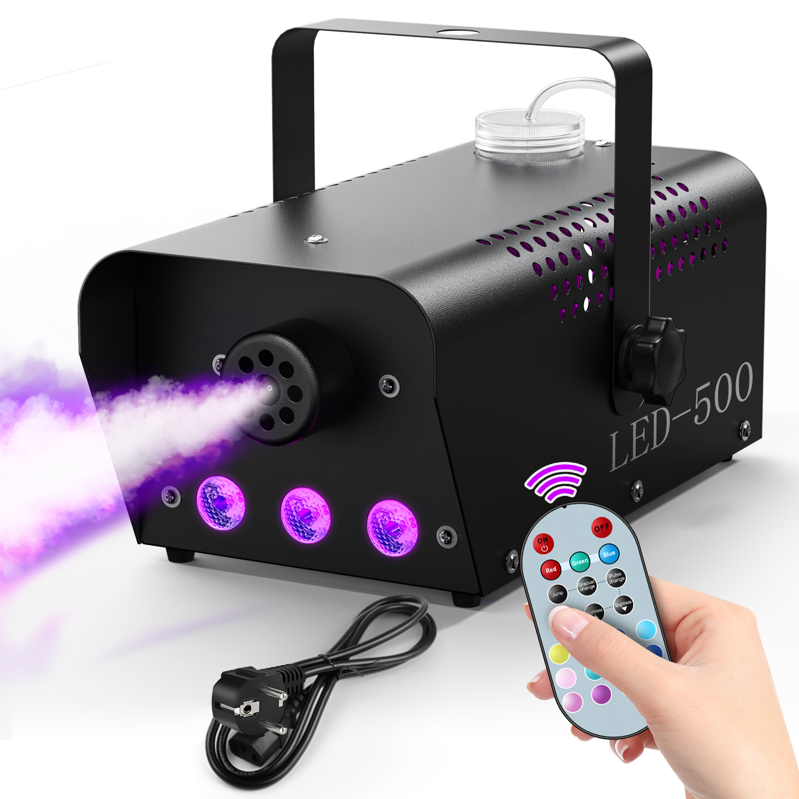 Comes with remote control, convenient to change light mode,plug and play, with a wireless remote control, you can always have direct control of your fog machine.