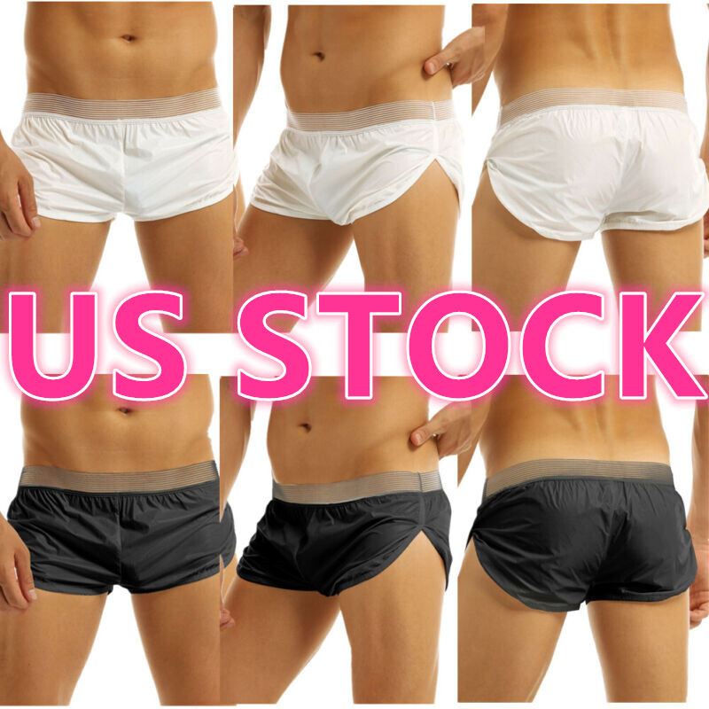 Men Wet Look Patent Leather Swimming Trunks Low Rise Drawstring Boxer Shorts Swimwear .