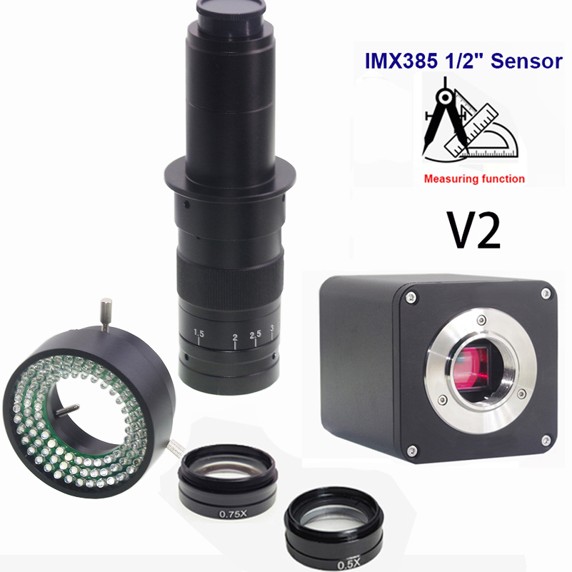 2024 Lapsun 1080P 60FPS HDMI WDR Industrial Jewelry Digital Microscope Camera CCD Support U Disk Saving Photos and Videos WDR(Wide Dynamic Range) SONY IMX385 V2 With / Without Measurement Function + 5X-180X C-mount Lens + 96 LED Ring Light + Barlow Lens |