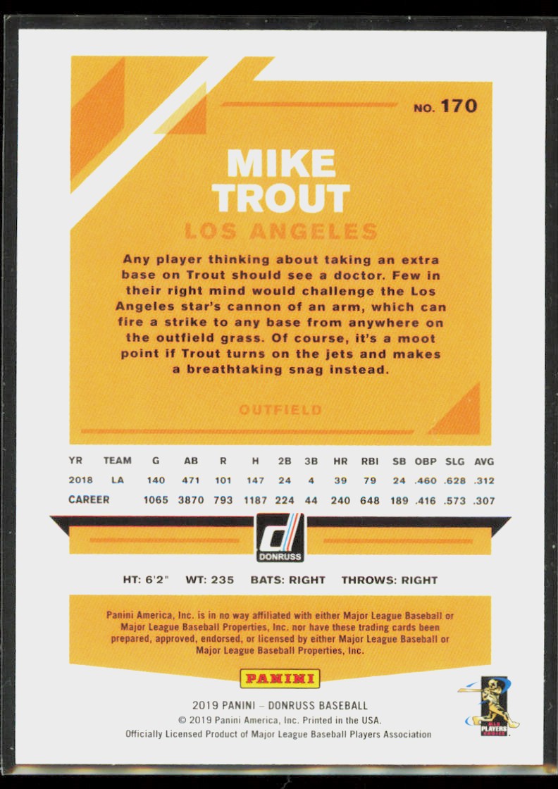 2019 Panini Donruss Fielding Mike Trout Angels #170