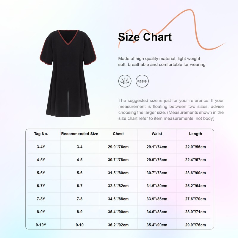 | 3-4Y | 3-4 | 29.9’’/76cm | 29.1’’/74cm | 22.0’’/56cm |