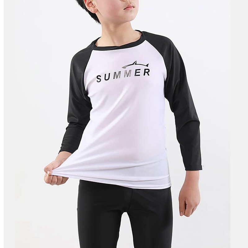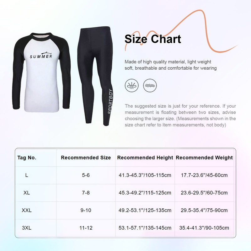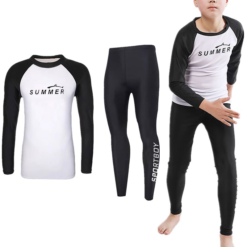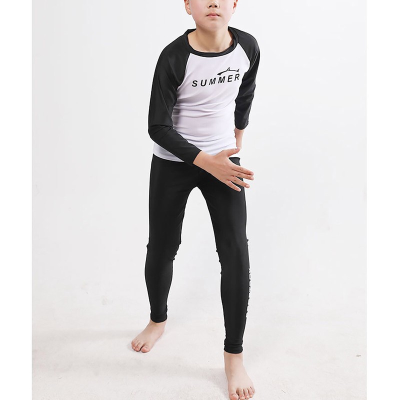 Designed with long sleeve swim top, elastic waist, long pants, letters print, make boys look more active.
