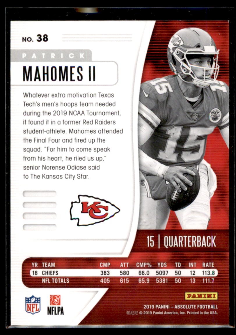 2019 Panini Absolute Patrick Mahomes II Kansas City Chiefs #38