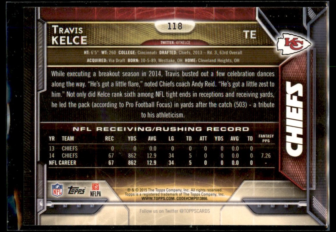2015 Topps Base Travis Kelce Kansas City Chiefs #118