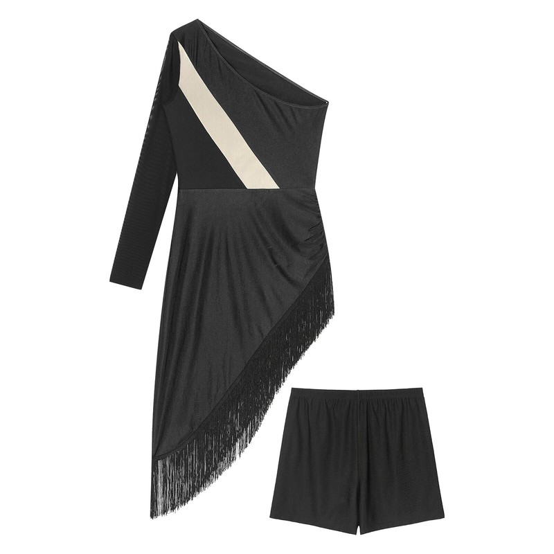 One shoulder asymmetrical dress with tassels adds a sense of movement and beauty to your dance. You will get a lot of compliments in this dance dress.