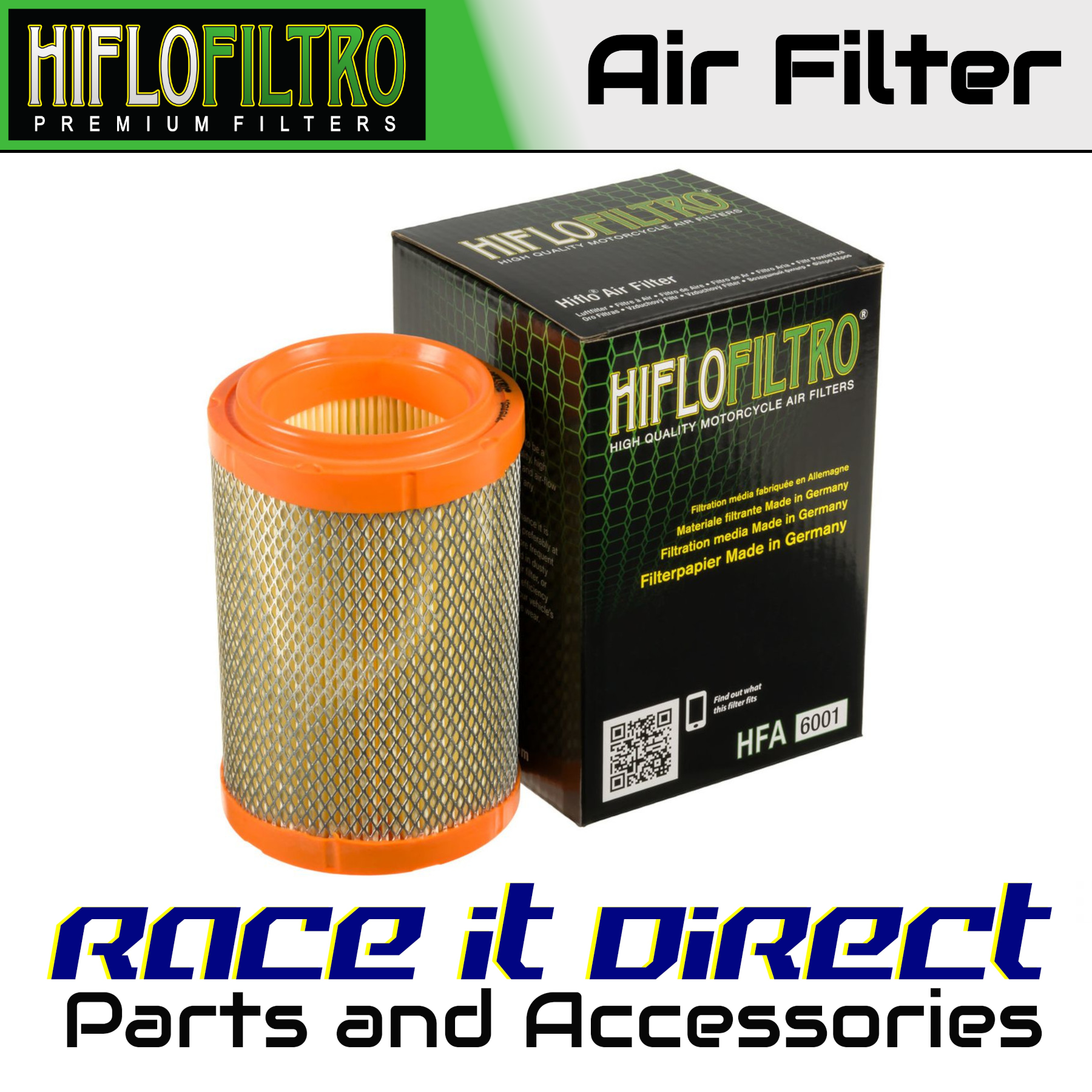 Hiflofiltro air filters are manufactured to fit the factory air box and are a direct replacement for original equipment filters. Top quality powerflow filtering media, developed for modern high performance engines.