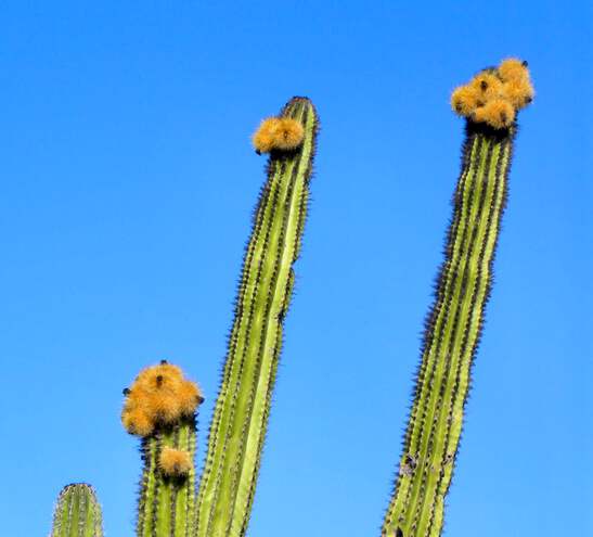 Flowers: During the blooming season, which usually occurs in late spring to early summer, Pachycereus pecten-aboriginum produces stunning white or cream-colored flowers. These flowers are typically large and tubular, often with a pleasant fragrance. They appear along the upper portions of the cactus stems and attract pollinators such as bees and birds.