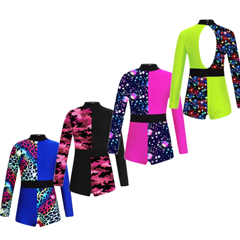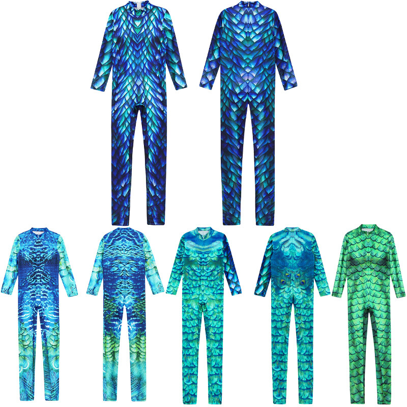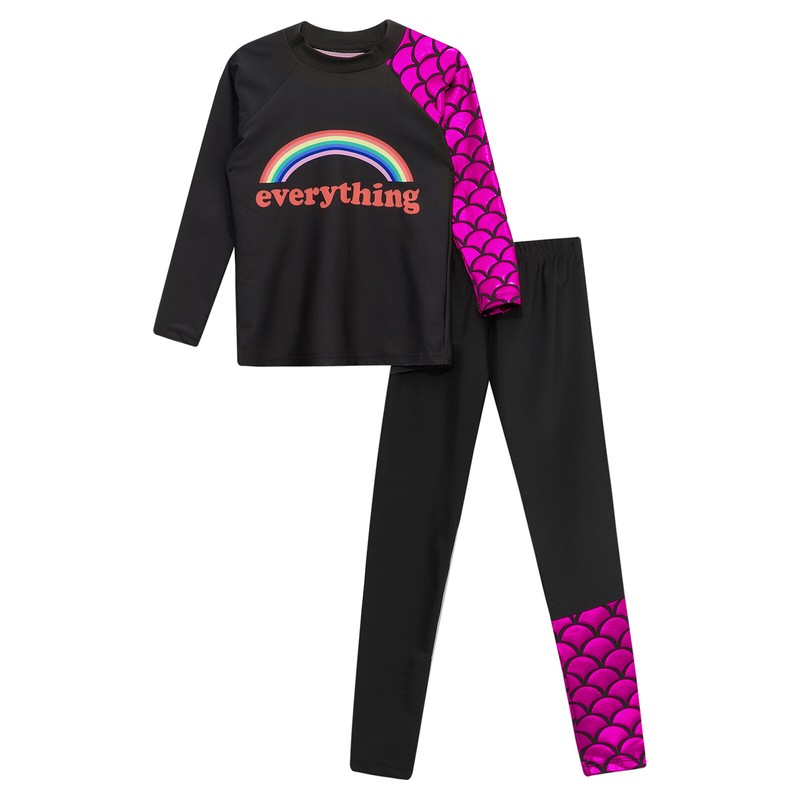 Long sleeve, long pants, rainbow print with glossy fish scales patchwork make kids more stylish on beach.