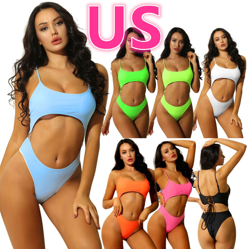 Women Strappy Lace-Up O-Ring Connected Bikini Swimsuit Lingerie Set.